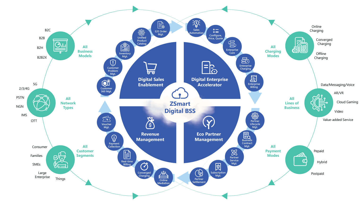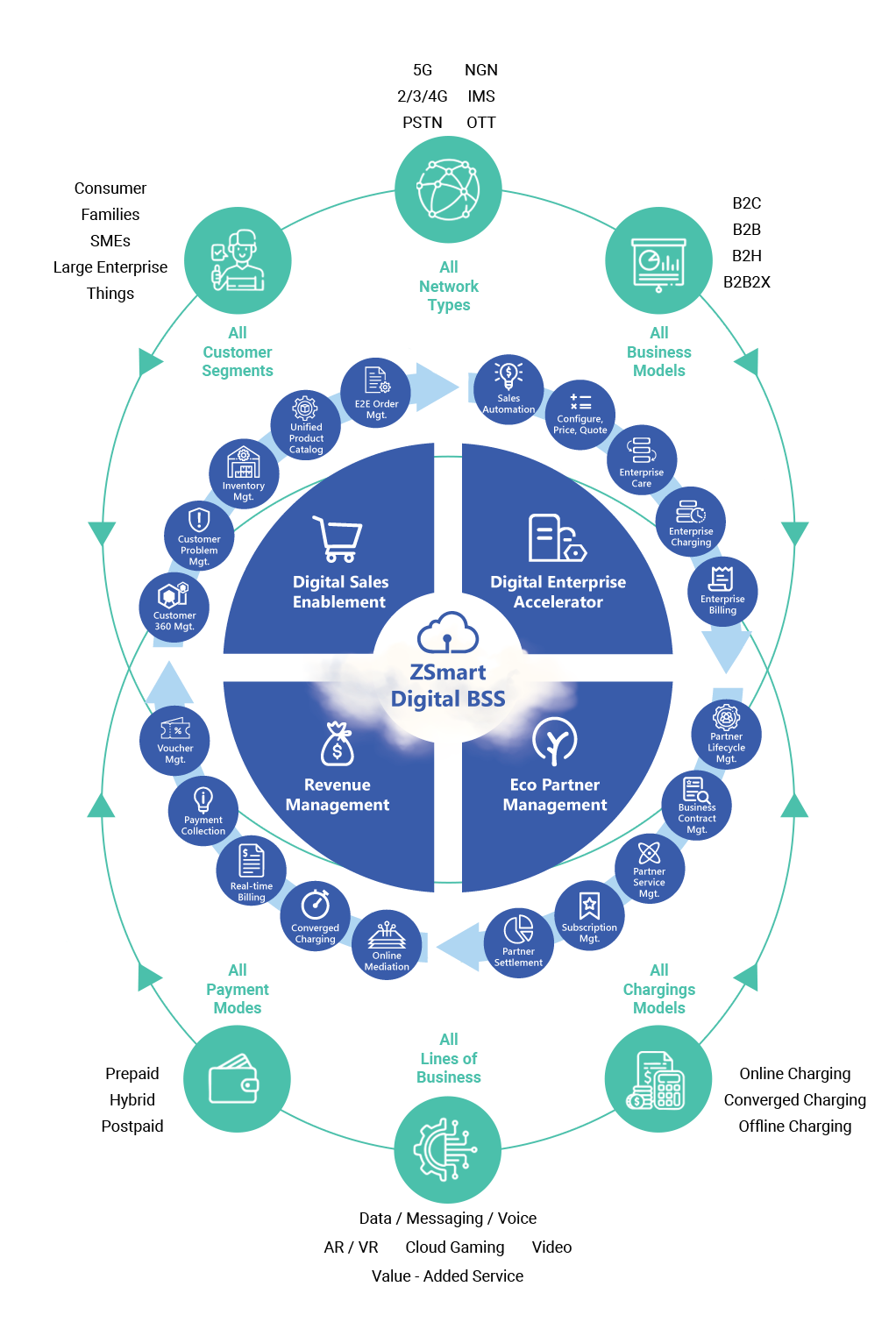 We deliver telecom-grade Digital Business Support System (BSS) solutions built on the ZSmart platform, enabling organizations to manage the full customer lifecycle, billing, charging, and service monetization across large-scale digital services.